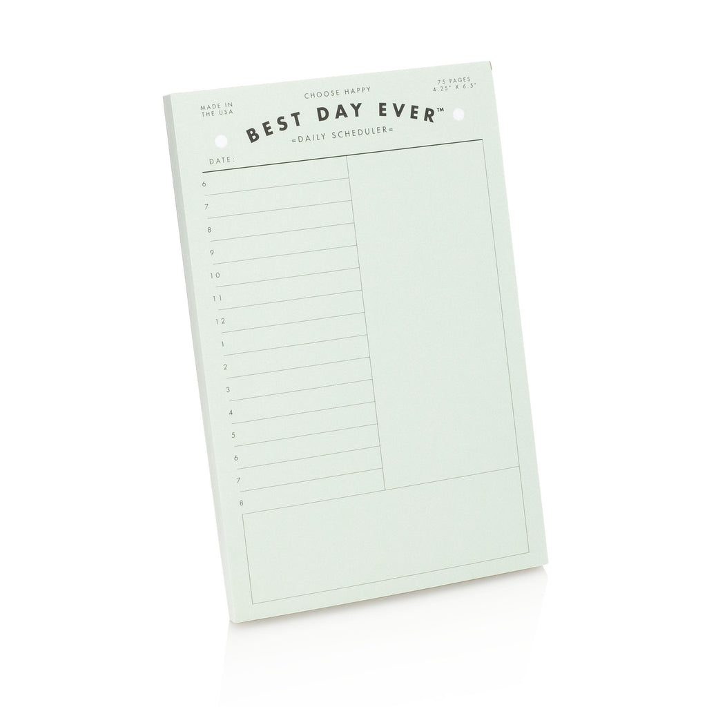 Let's face it, our lives are becoming more and more scheduled. Between work meetings, spinning class, kid's summer camps and social gatherings with friends, it's next to impossible to go without forgetting that it was your turn to bring apple slices to the peewee soccer game or pick up the champagne for a special toast. This notepad resolves the stress that comes with scheduling your everyday, every day.